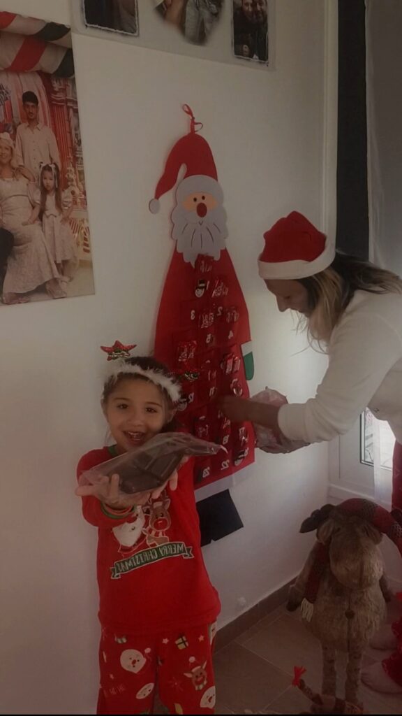 As we prepared the Advent Calendar, Augousta and I filled each pocket with little treats – one for her, one for her brother Alexandros. Each chocolate, each smile, each “look, mom!” is a small lesson in love and patience. The process is just as meaningful as the final result.