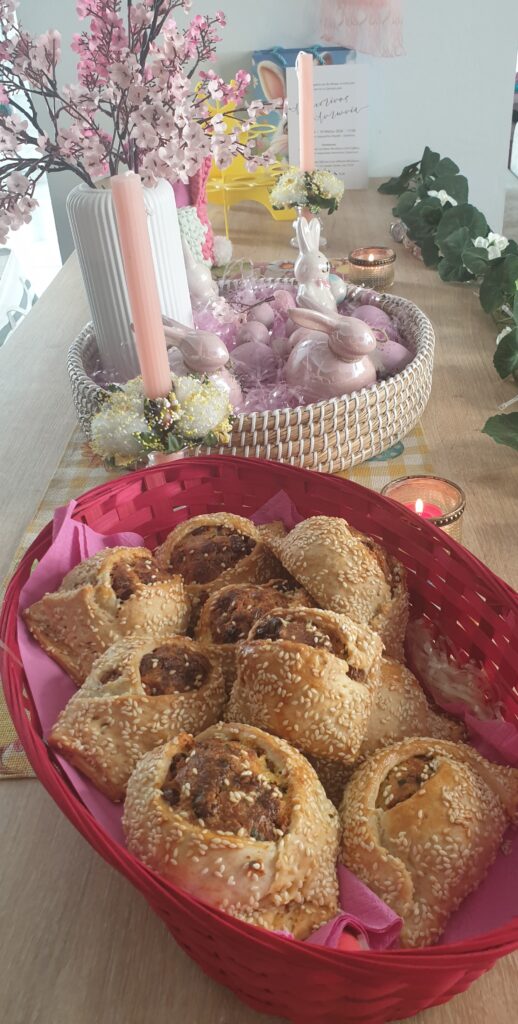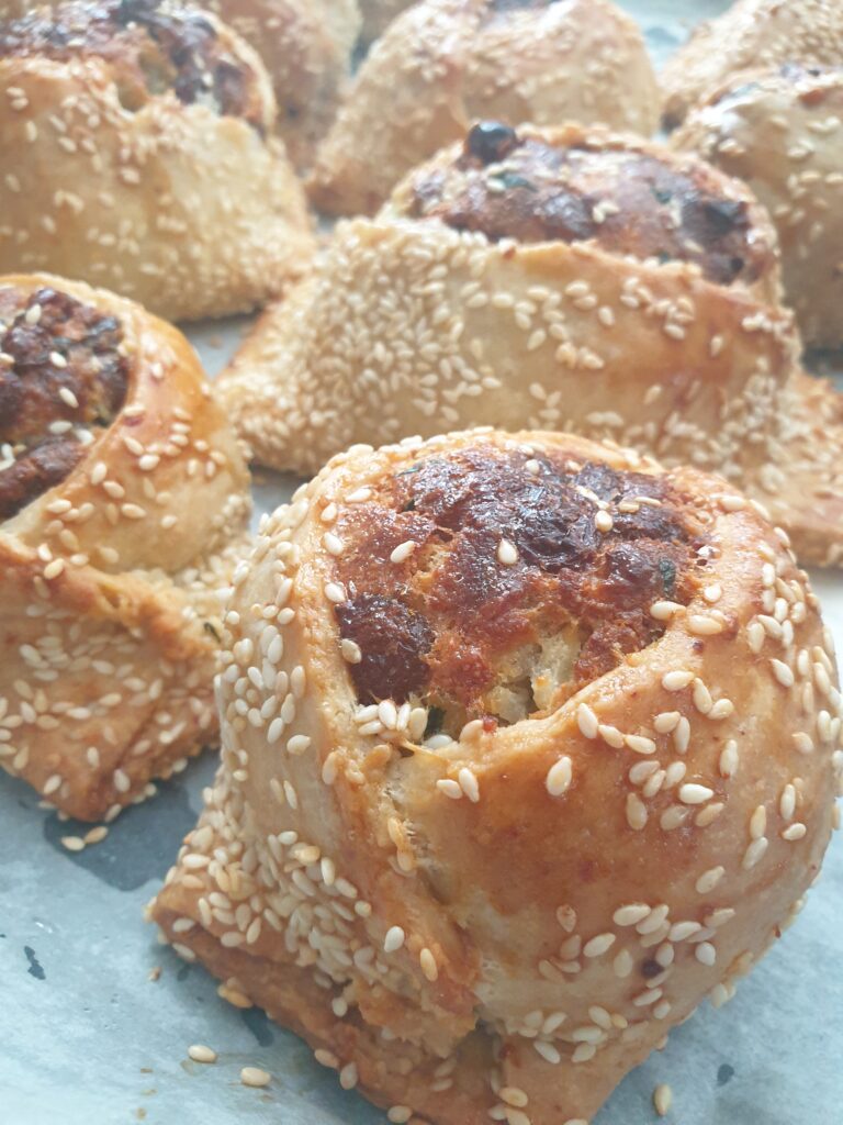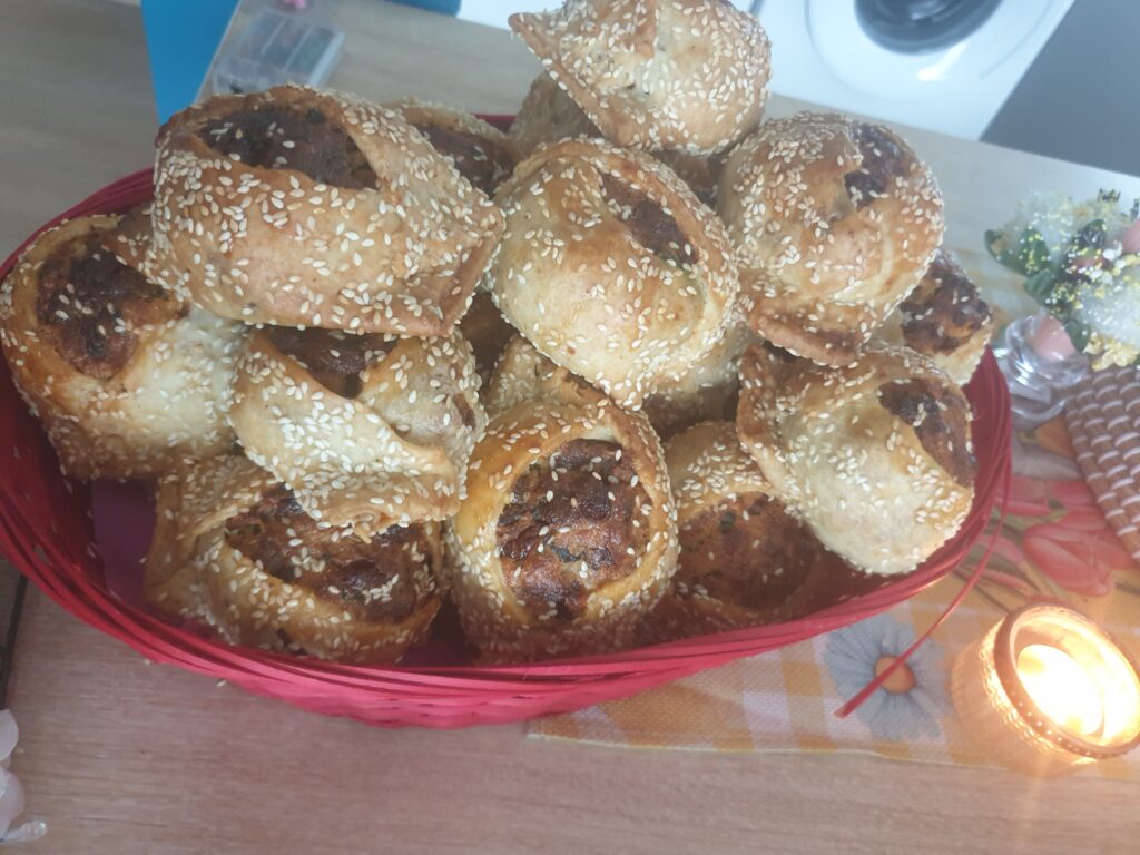 Αλείφουμε με το αυγό και ψήνουμε μέχρι να ροδίσουν όμορφα.