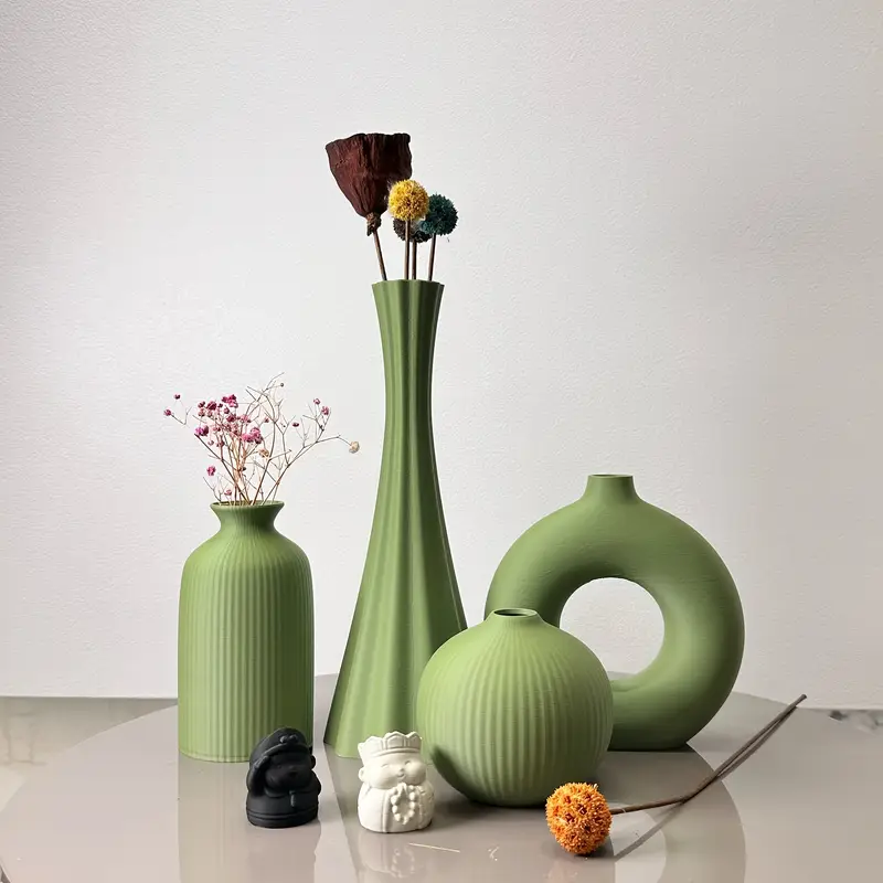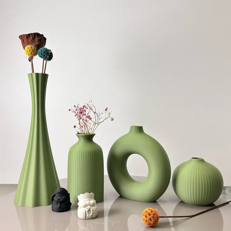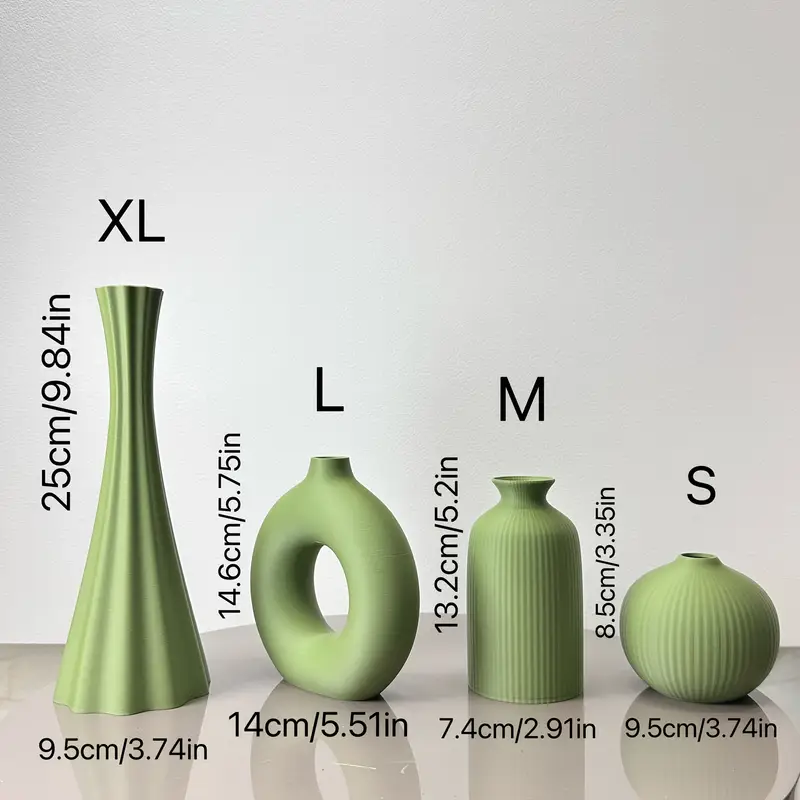 4pcs Olive Green Artistic Vases – Modern Bohemian Plastic Flower Vases for Home, Office, and Entryway Decor – Round Bud Vases in Shades of Green and White, Vases Home Deco