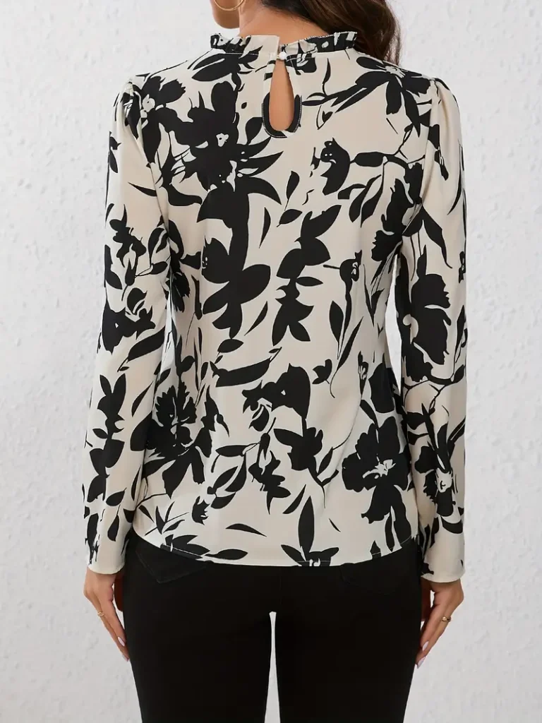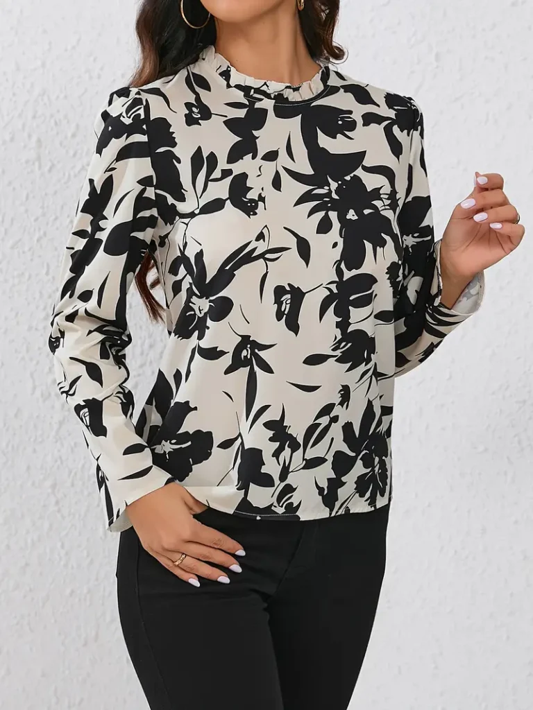 Μακρυμάνικη μπλούζα με floral print, κομψή μακρυμάνικη μπλούζα για την άνοιξη και το φθινόπωρο, γυναικεία ρούχα.