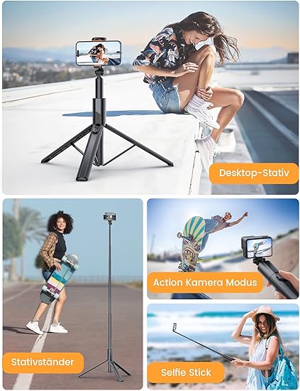 ANXRE 180 cm Mobile Phone Tripod Selfie Stick, All-in-1 Mobile Phone Tripod Holder Camera Tripod for Smartphone with Remote Shutter Release Compatible with Phone Camera GoPro
