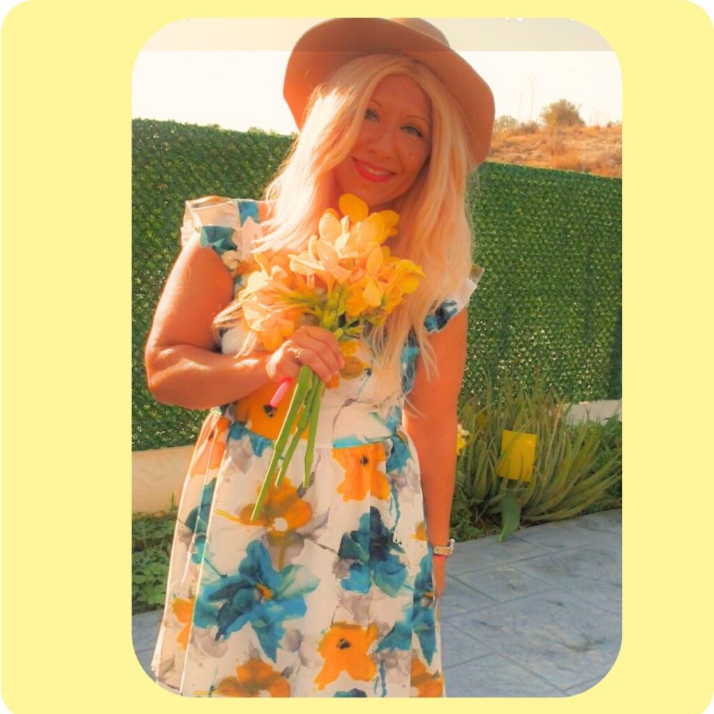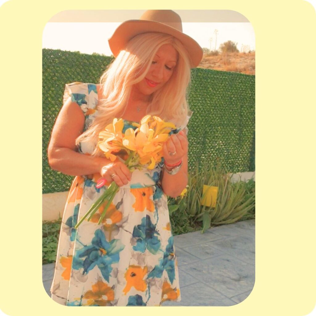 I chose this dreamy color for a summer afternoon in my backyard – I picked yellow flowers and then brought the magic inside, decorating my living room with them.